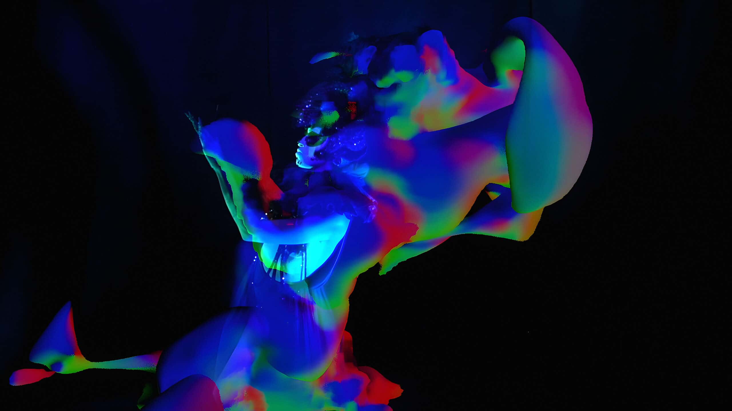 We translated our performances into augmented reality (AR) experiences, developing new software tools and working with scientists and therapists. Using ritual design as a framework, these series of ritual performances promote embodiment, interconnectedness and connection to the self. The characters are representing light and shadow archetypes, exploring the collective unconscious and dream-like states. The AR real-time visuals represent natural elements and respond to the performer’s movement and the colours in the scene.